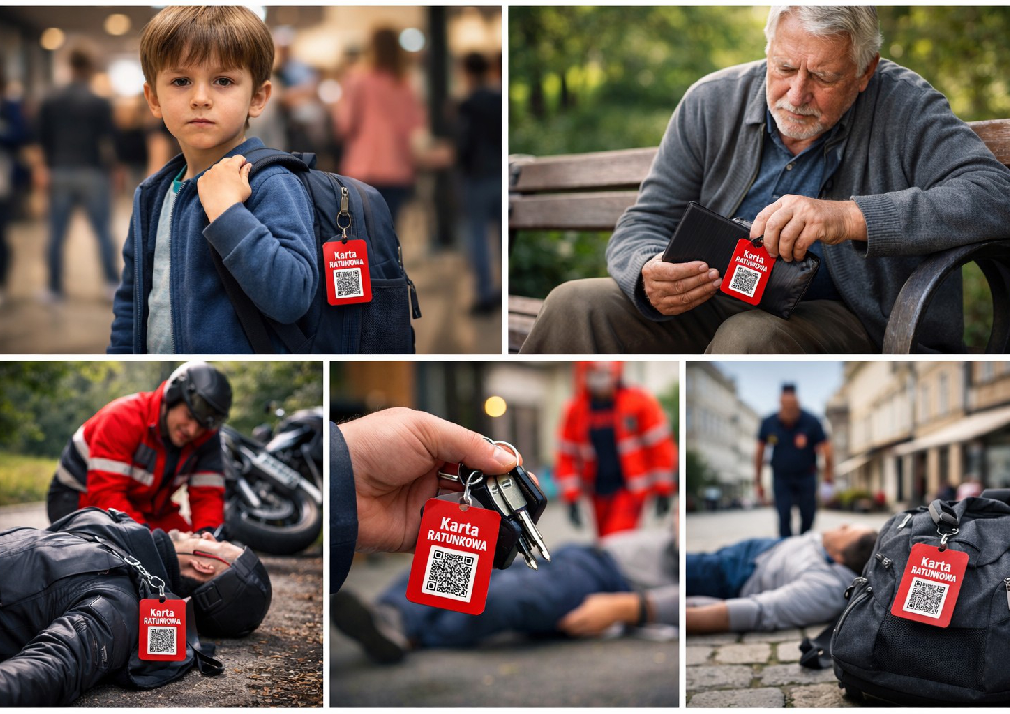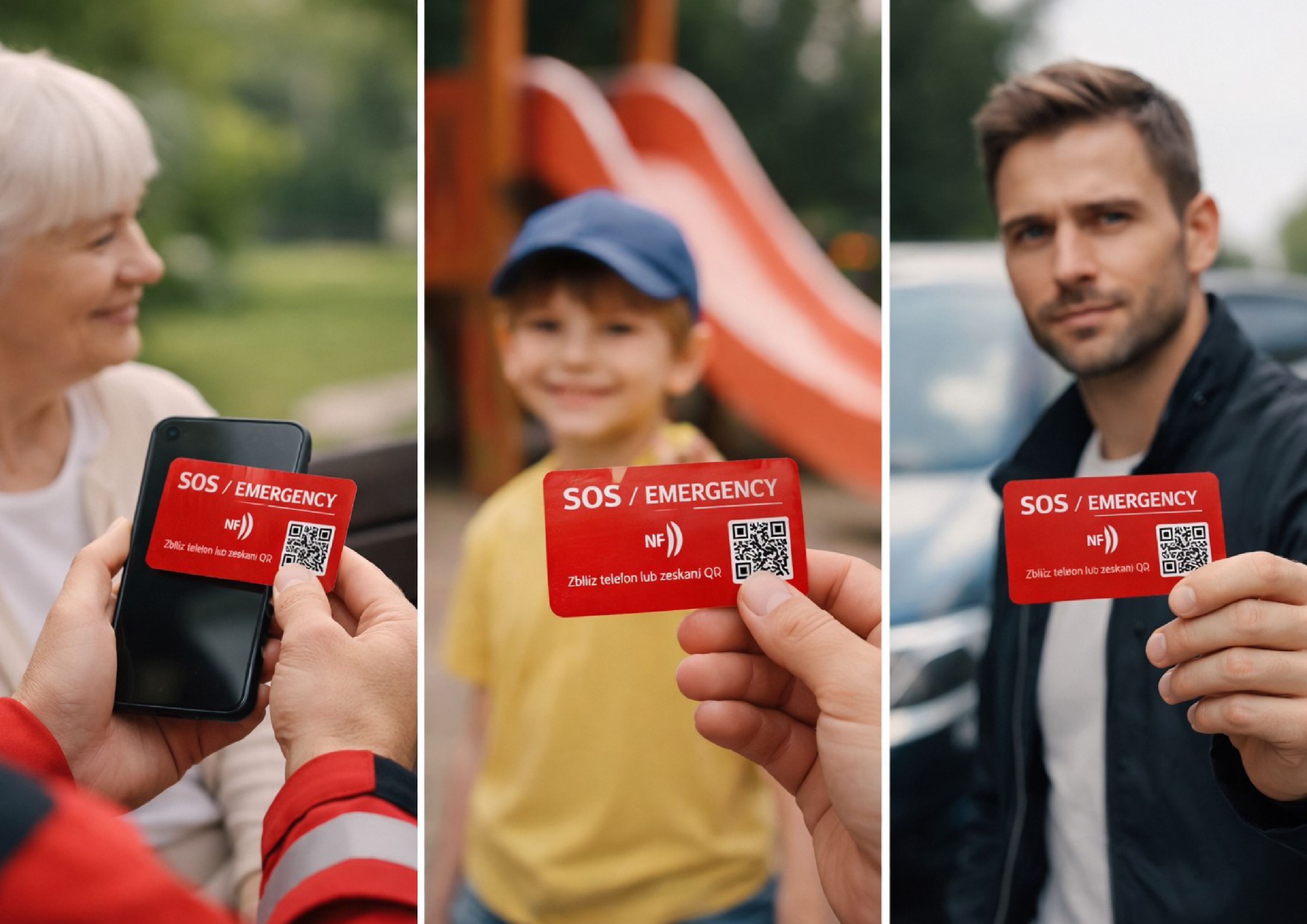 W nagłym przypadku ratownik lub jakakolwiek osoba skanuje kartę zbliżeniowo (NFC) bądź kodem QR.